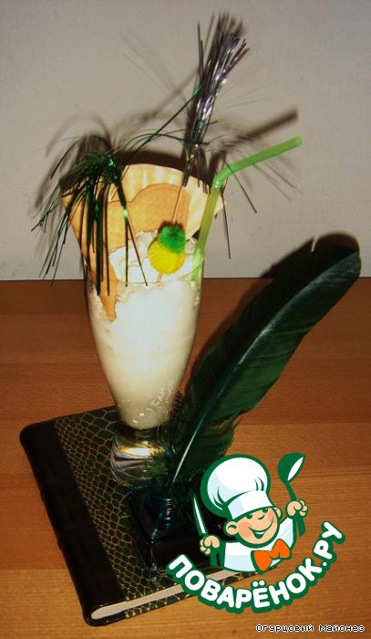 Оставшиеся пространство заполняем взбитыми сливками из баллончика. Готовый десерт украшаем и сразу же подаём. Нижний слой выпивается через трубочку, а верхний съедается ложкой.