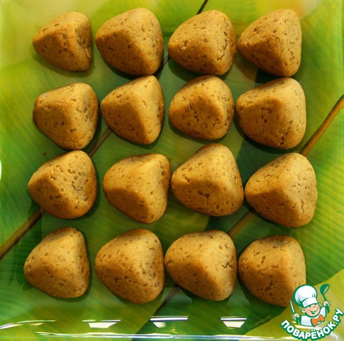 Сформируйте маленькие шарики, кубики, пирамидки (что вашей душе угодно, тесто очень податливое), разместите их на противне, застеленном промасленной пергаментной бумагой. Пеките в разогретой до 180 градусов духовке в течение 10-15 минут (смотрите по своей духовке и размеру печенья, у меня печенье очень маленькое, пеклось 9-10 минут).