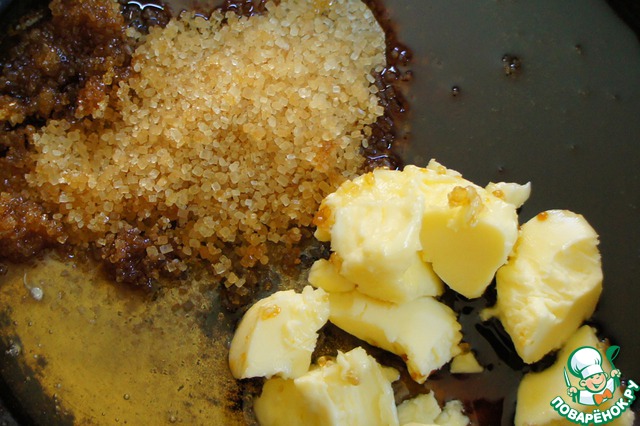 Смешайте мед, патоку, коричневый сахар и сливочное масло; поставьте на средний огонь и помешивайте, пока масса не станет однородной (минутку-две). Уберите с огня.Черная патока (меласса) очень популярна в арабских странах. В Египте "черный мёд" можно найти на прилавках даже самых маленьких магазинчиков, и непременно - в любом доме.Я не уверена, чем можно заменить патоку - она имеет особенный вкус, дает неповторимый запах и цвет выпечке, но думаю, что можно взять вместо нее просто мед.