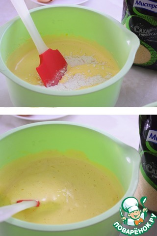 Небольшими порциями вводим в вышеприготовленную смесь и хорошо перемешиваем.