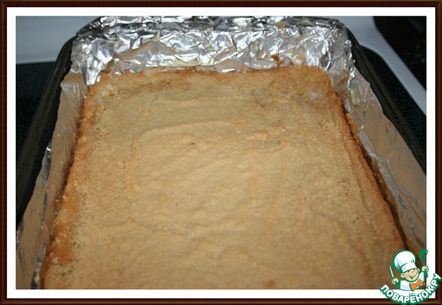 4. Форму - 30 см x 20 см x 5 см - застелите фольгой и оставьте края, чтоб потом легче снять из формы. Распределите тесто по всей форме.