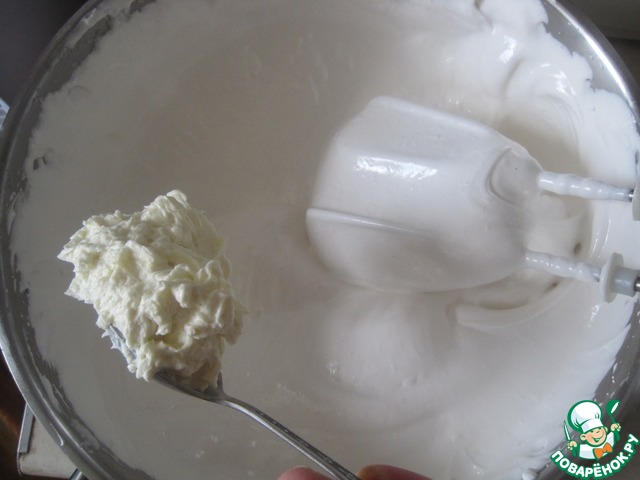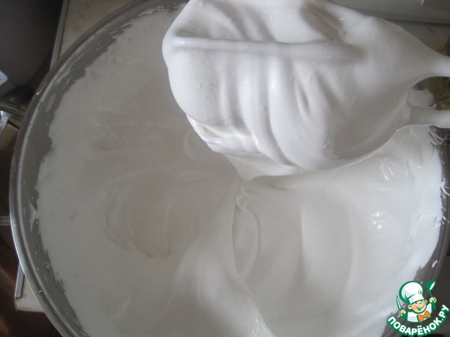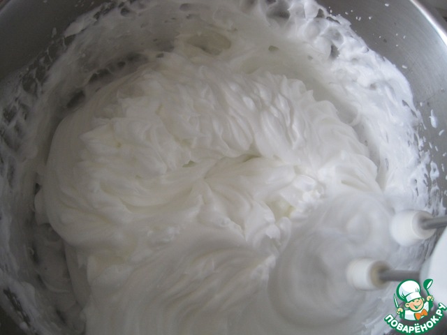 В это-же время, когда сироп почти готов начинаем взбивать охлажденные белки до увеличения в объеме 6 раз, добавляем лимонную кислоту, для укрепления структуры белка.