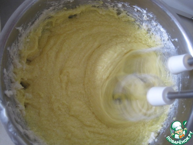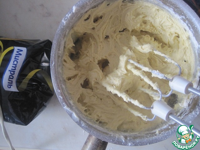 Добавляем муку, замес производим быстро, чтобы тесто не получилось затяжным