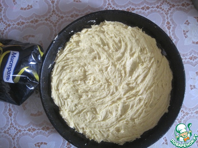 Тесто делим на 2 части, разравниваем тонким слоем