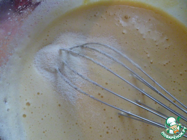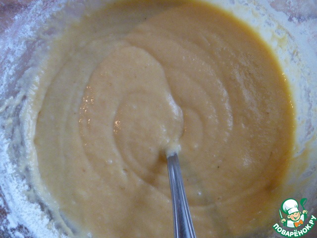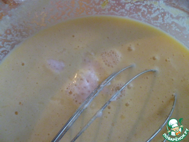 Затем влить растопленный маргарин и погасить соду ( я гашу яблочным уксусом).