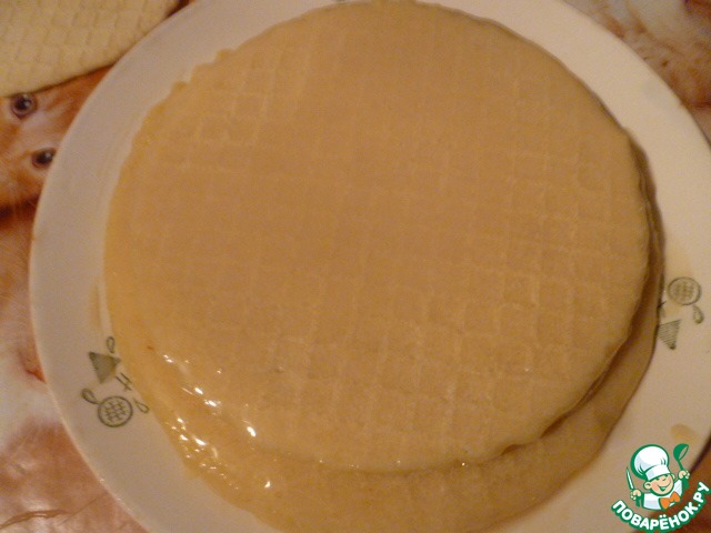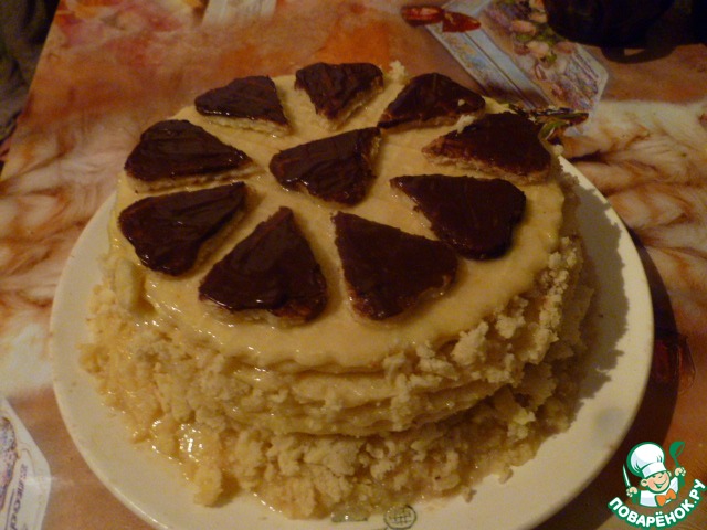 Для этого тортика мне хватило сгущенки сваренной из 600 мл молока и 300 г сахара.