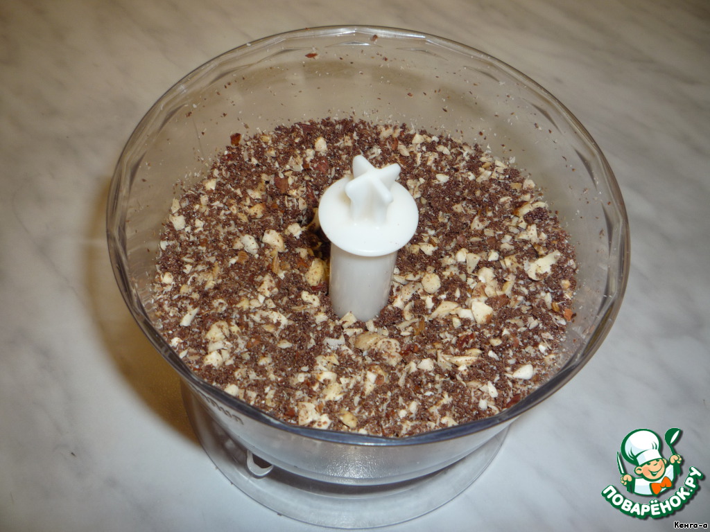 Включаем духовку на 180 градусов. Растапливаем масло или заранее достаем из холодильника, чтобы размягчилось – роли не играет, на Ваше усмотрение. Шоколад (лучше все-таки пористый!) и лесные орехи измельчаем в блендере до небольших кусочков.