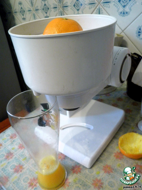Первым делом выжимаем сок из апельсина. Я это делала на моем любимом комбайне, но можно и вручную. Это был единственный подготовительный этап.