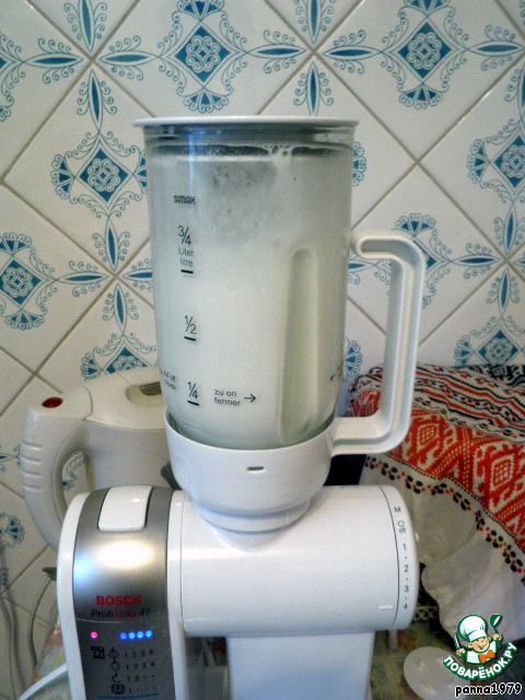 Приступим к самому коктейлю. Взобьем немного блендером молоко. Наверное, можно и сливки, но мне хотелось, чтобы коктейль был легкий. Наливаем в молоко наш сок, перемешиваем. Добавляем сгущенку и еще раз взбиваем.