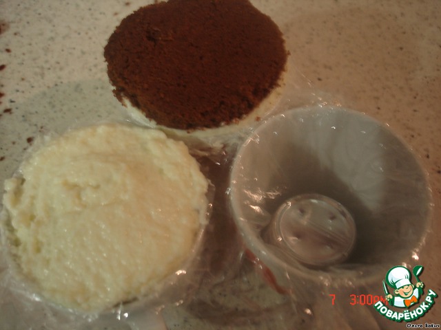 Отдельно взбиваем сыр маскарпоне с сахаром, добавляем остывший шоколад, взбитые сливки.