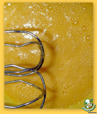 Взбить яйца с сахаром. Добавить масло и ликер. Размешать.
