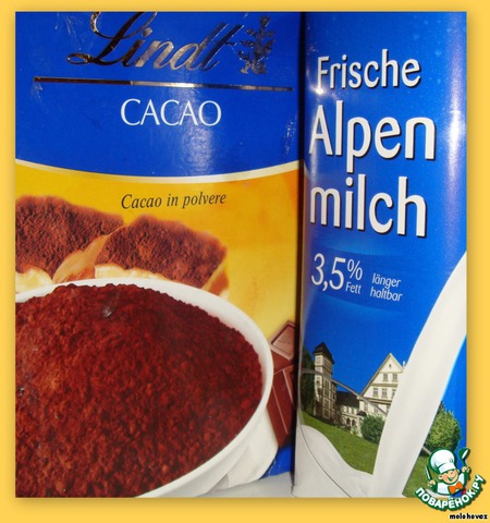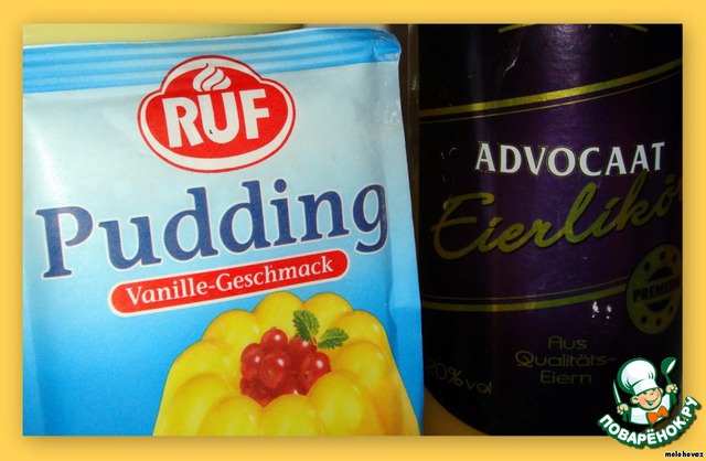 В третью - сухой порошок пудинга и ликер. Хорошо взбить.