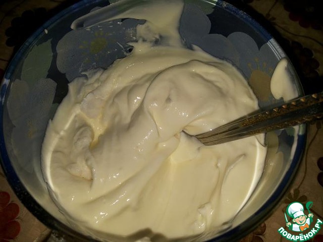Приготовила сливочный крем, а проще говоря взбила сливки с сахарной пудрой и загустителем.