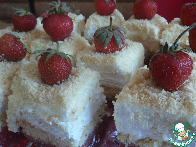 | Рецепт этого пляцка я позаимствовала у Mila с Кукарамы, большое спасибо автору! Название символично (по крайней мере для меня), я уже не раз пекла его : это открытие клубничного сезона, начало лета... Я внесла небольшие изменения как в рецептуру, так и в способ приготовления, но они так не значительны, что, надеюсь, автор не будет в обиде. Готовить его очень легко. несмотря на кажущуюся сложность и в награду вы получите море удовольствия! |