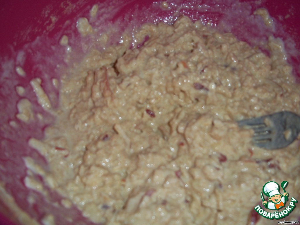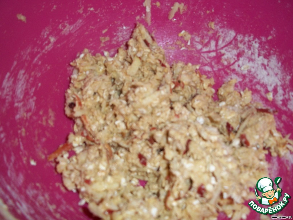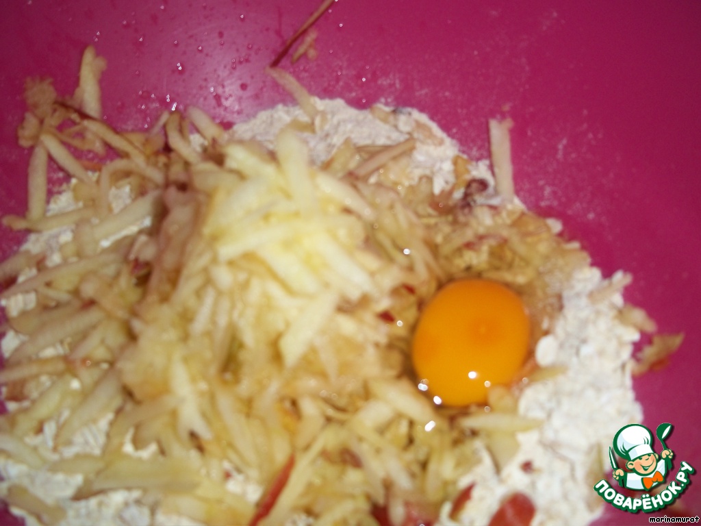 Смешиваем все сухие ингредиенты, добавляем яблоко,...