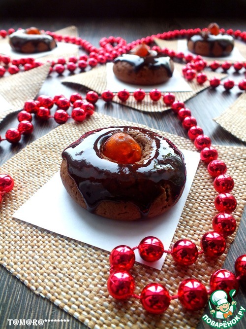 Итак в ковшике смешайте сахарную пудру, 1 ст. л какао и горячую воду. Немного проварите. Сразу же обмажьте верхушки печенья глазурью.