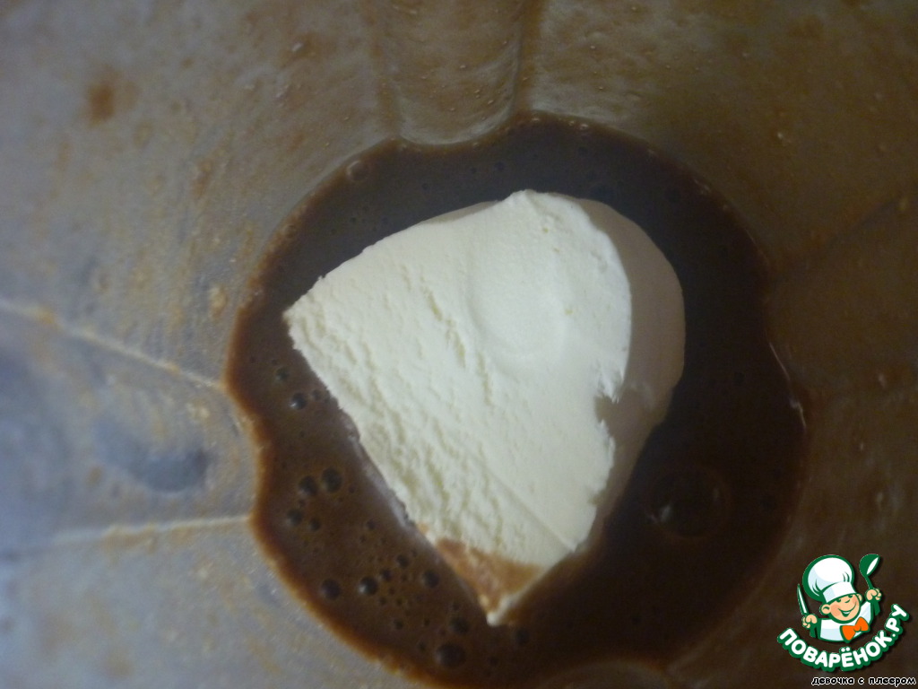 В кофейно-банановую смесь добавить половину мороженого и еще раз взбить