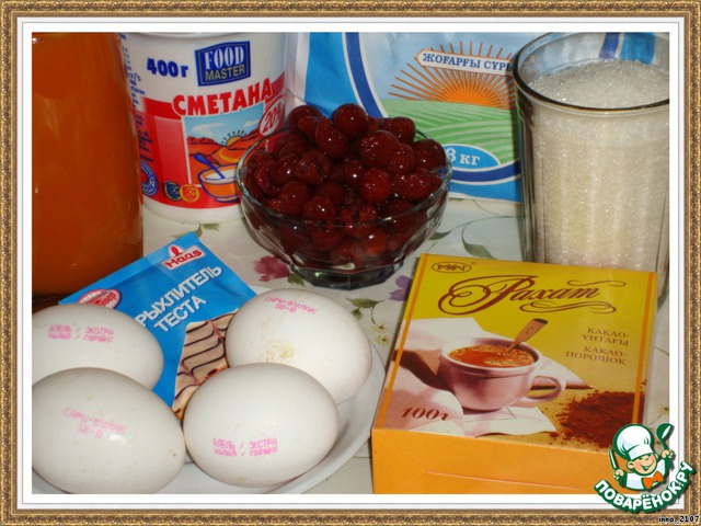 Затем добавить какао и вишню. Вишню, думаю, можно и замороженную. Только предварительно разморозить и слить образовавшийся сок.
