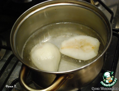 Грушу очистить, разрезать вдоль пополам. Вскипятить воду, добавить сахар и лимонный сок, отварить груши до мягкости (не более 5 минут). Остудить, нарезать полукругами.