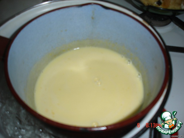 Молоко ароматизировать ванилью. Желтки яиц растереть с оставшимся сахаром, соединить с холодным молоком, поставить на водяную баню и нагревать до загустения. Массу сразу убирать с огня, чтобы желтки не свернулись. Остудить.