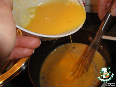 Желток, крахмал и сахар перемешать и ввести в молочную смесь.