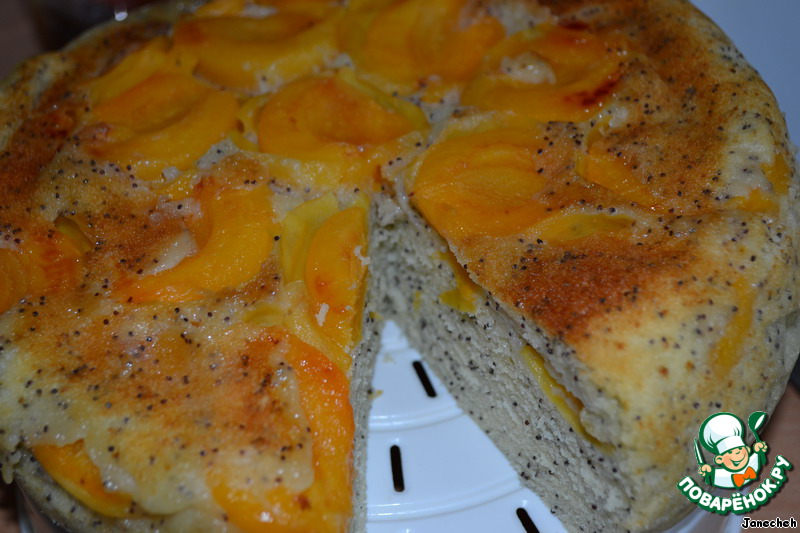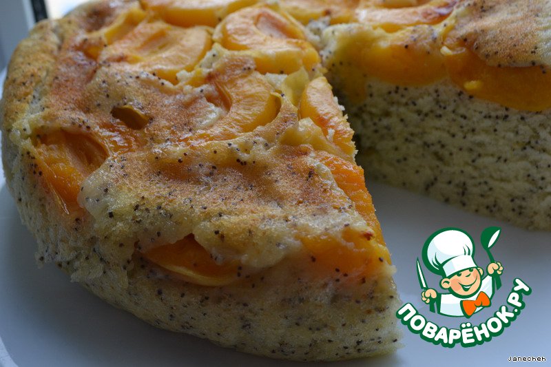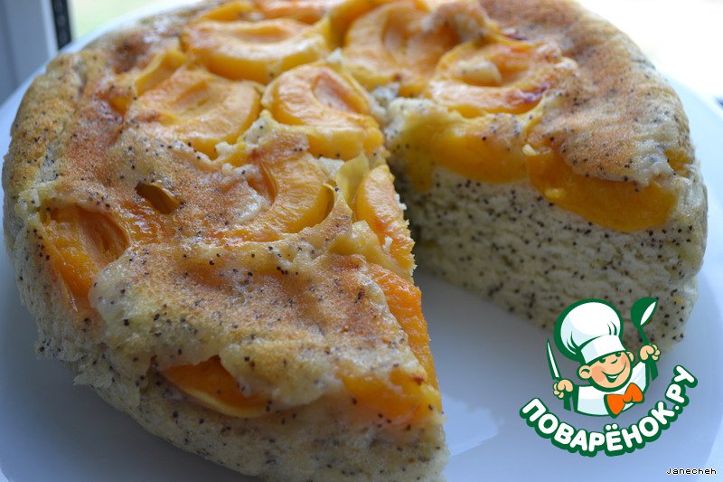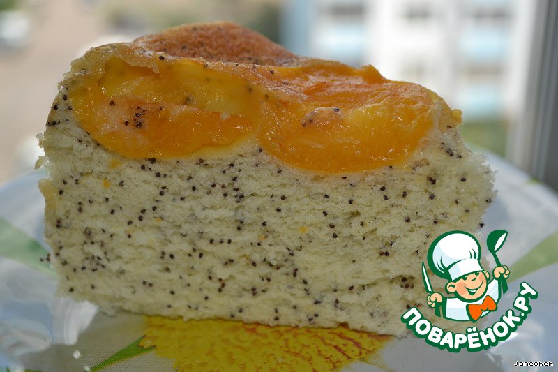 | Мягкий ароматный торт, украшенный спелыми абрикосами. Готовится очень легко. Бисквит я пекла по рецепту "Бисквит на горячем молоке", добавила в тесто только мак. |