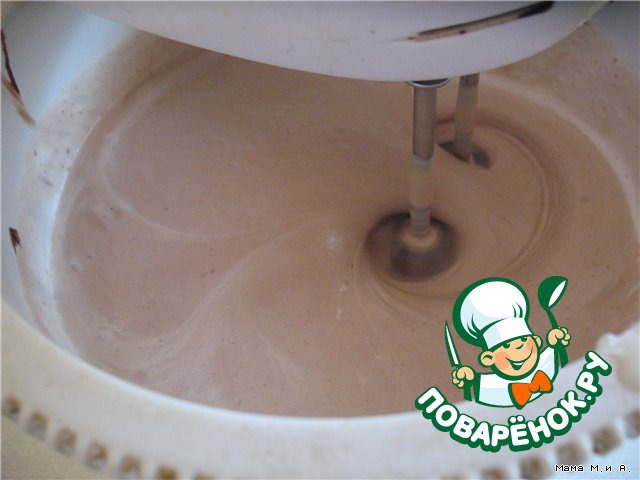 Добавить муку и разрыxлитель (просеянныe и перемешанныe вместе предварительно) вo взбитые желтки.