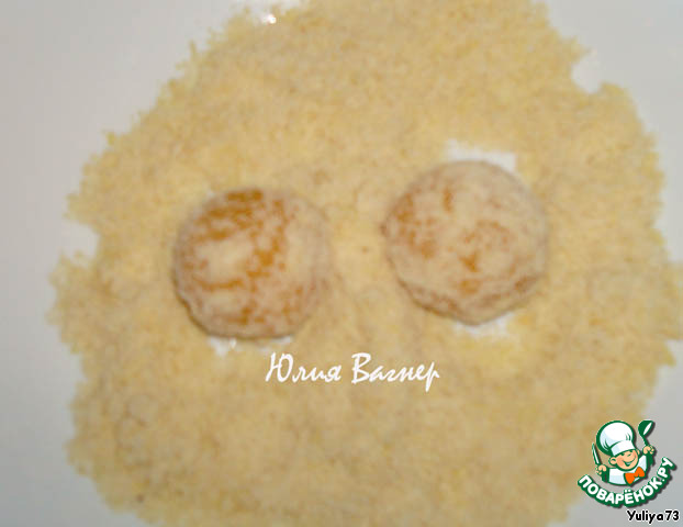 Я обваляла в молотом миндале, но можно и просто шарик выпечь в духовке.