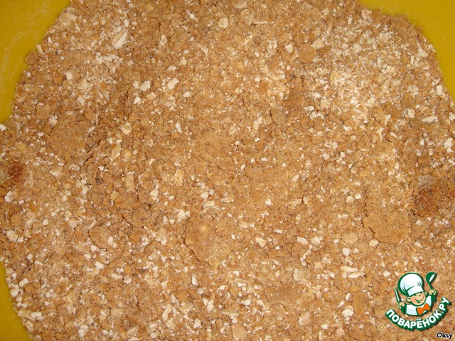 При помощи блендера измельчаем хлопья и хлебцы в крошку (но не до состояния муки).