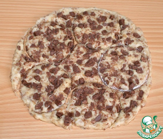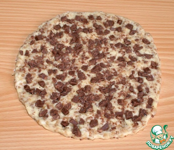 Часть теста раскатать в виде круга, толщиной 0,5 см.