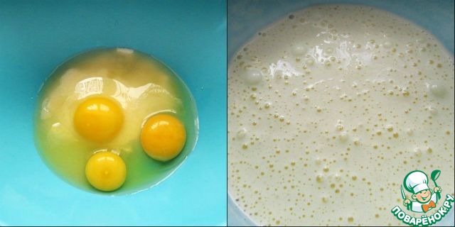 Яйца с сахаром взбиваем до увеличения в объёме вдвое.