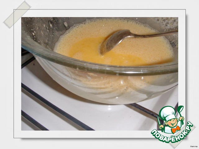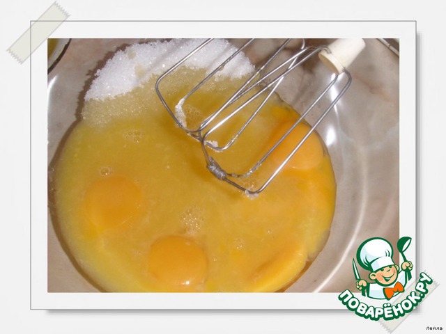 Смешать миксером или венчиком желтки с 3/4 чашки сахара и апельсиновым соком.
