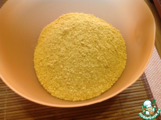 Печенье измельчить в полиэтиленовом пакете или блендере.