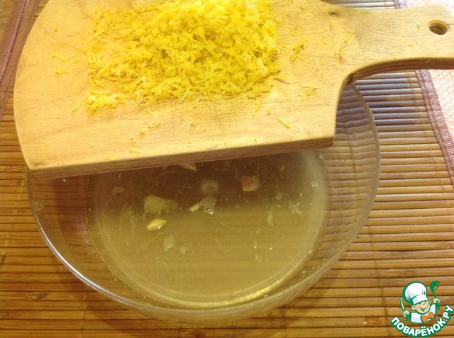 Пока вариться сиром, натираем цедру и выжимаем сок из лимона. Остатками воды заливаем желатин, когда набухнет нагреваем пока не раствориться. Желатин не должен кипеть.