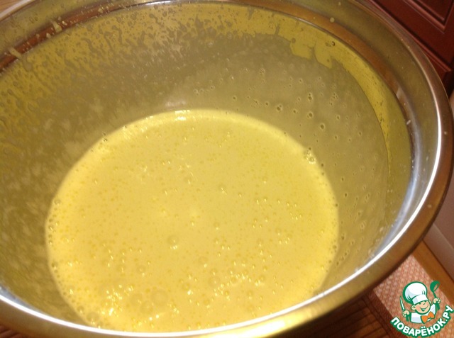 Взбиваем желтки, в них тонкой струйкой вливаем горячий сахарный сироп и взбиваем до тех пор пока смесь не станет белой и не остынет.