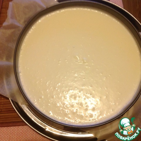 И выкладываем в форму на основу из печенья. Убираем охлаждаться в холодильник на несколько часов, пока торт не застынет. Лучше на ночь.