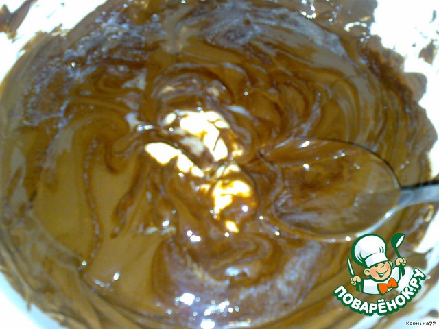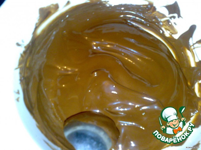 Шоколад разломать на кусочки и растопить на водяной бане, постоянно помешивая.