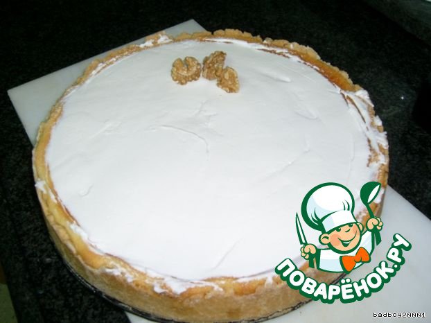 Cтавим заливку в холодильник. Включаем духовку на разогрев 160 градусов и готовим форму...