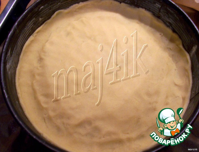 Распределить тесто по дну формы, делая бортик шириной в большой палец.