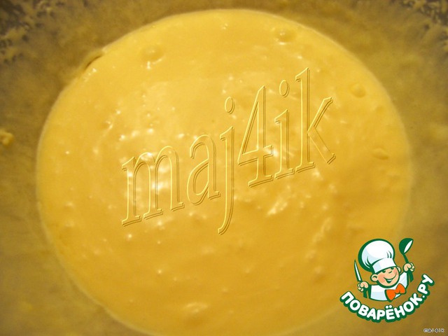 Растопленное масло, 100 гр. сахара, желтки ванильный сахар, коньяк и цедру лимона смешать и взбивать миксером до густой и однородной массы.