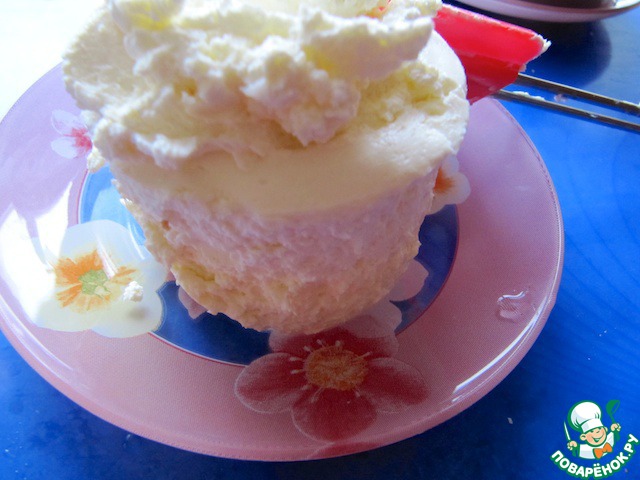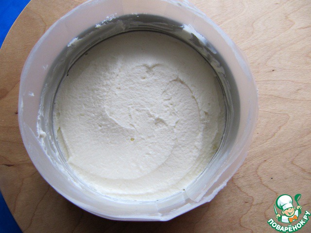 Выложить слой взбитого крема. Аналогично поступить с другой формой. Обе заполненные формы поместить в морозильную камеру на 15-20 минут.