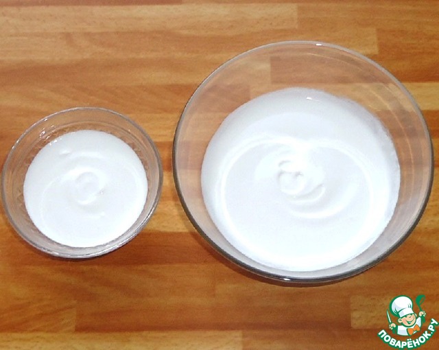 Яичные белки комнатной температуры с сахарной пудрой взбить в крепкую пену.