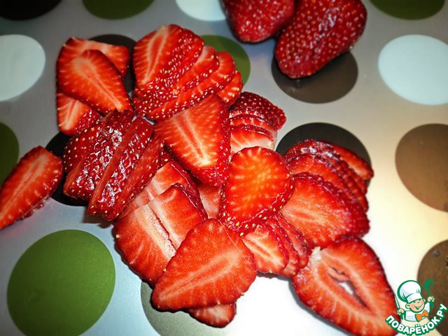 Пока пекутся коржики, готовим клубнику, промываем, обсушиваем, нарезаем! (Стараемся всю не слопать=)))