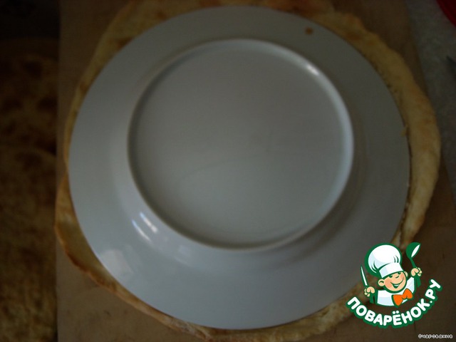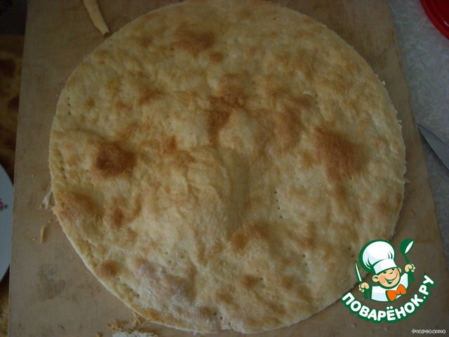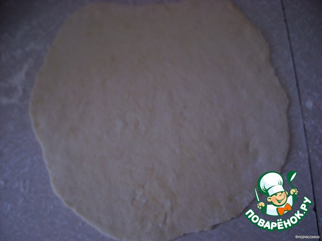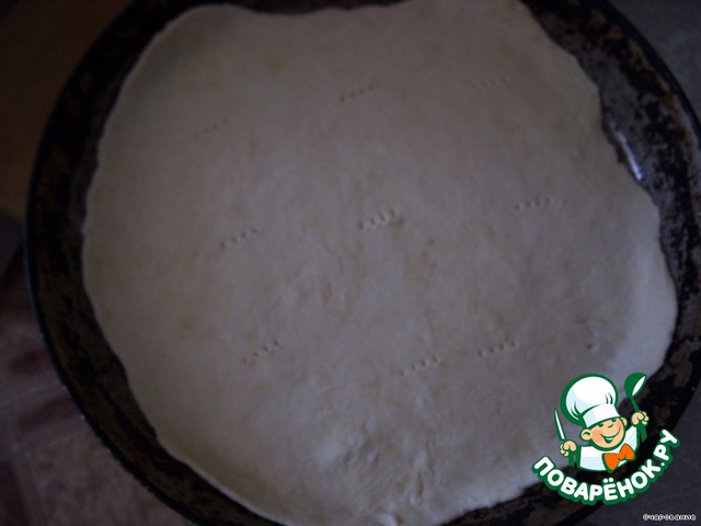 Достаем из холодильника песочное тесто, раскатываем в пласт, лучше раскатать очень тонко, потому что он будет подниматься и уменьшится, наколоть вилкой, выпечь.