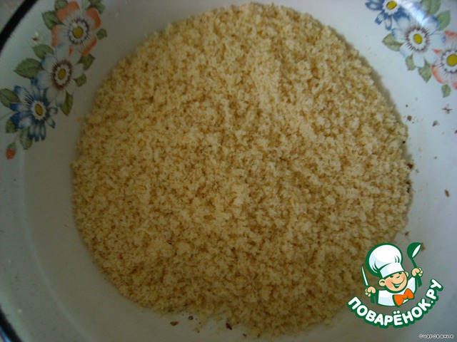 Обрезки коржей перемолоть в крошку и обсыпать бока торта.