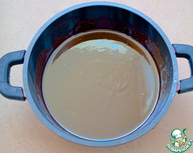 2. Растопить шоколад с водой и маслом на паровой бане, периодически помешивая.