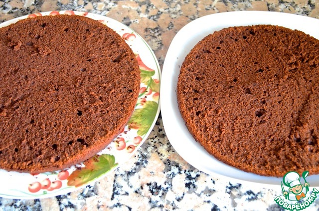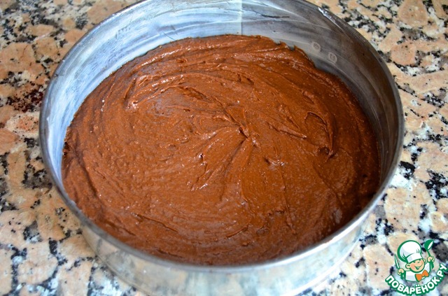 8. Запекать 45 минут. Достать из формы и дать остыть. Разрезать на два пласта. Для глазури: растопить масло, добавить порошок какао и готовить 1 минуту. Влить молоко, добавить сахарную пудру и размешать.
