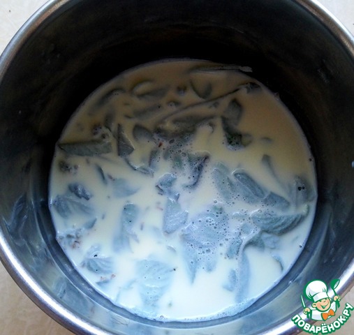 В кастрюлю влейте 300 мл молока, положите мяту (ментоловую или какую любите), поставьте на огонь, доведите до кипения, отставьте на 15 минут.