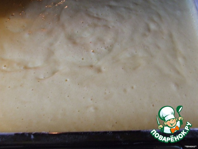 Противень смазать маргарином и обсыпать мукой. Выложить тесто. И выпекать в разогретой духовку до готовности.