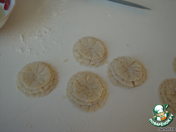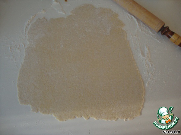 На присыпанной мукой поверхности раскатать тонкий пласт.